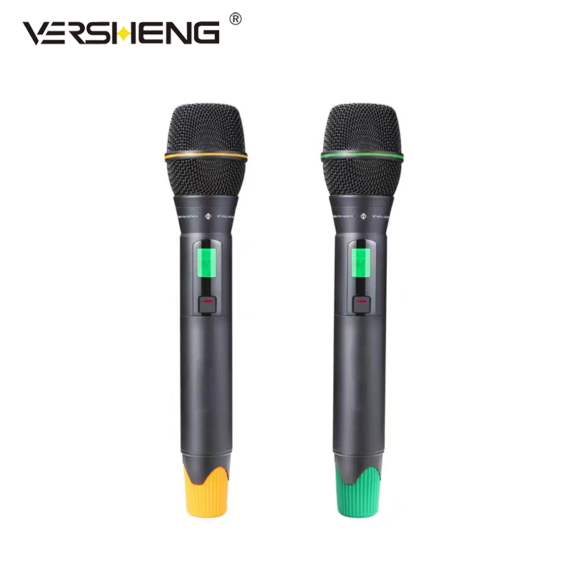 (2)手持式话筒单元全金属设计;动圈式咪芯,配置有啸叫抑制功能电路,全新的音频电路构架,音频信号处理采用国际顶级高性能音频处理芯片,超低失真声音处理电路设计,在声音的细节上具有优秀的表现力,强劲的动态跟踪能力使得远和近距离拾音收放自如;超强反啸叫抑制;KTV工程、大小型演出工程,轻松安装调试。